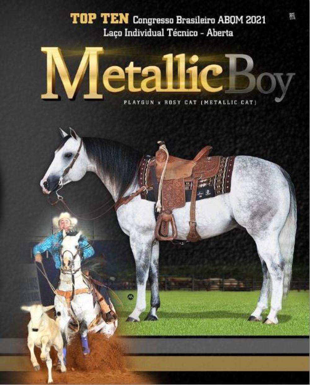 Seu pai METALLIC BOY soma 63,00 pontos na ABQM, foi Campeão da Copa dos Campeões da ABQM (Laço Individual Téc - Aberta - Senior), Res. Campeão Nacional ABQM (Laço Individual Téc - Aberta - Senior), 3º L Congresso ABQM ( Laço Individual Téc - Aberta - Senior), entre outros títulos e colocações. Filho de PLAYGUN em mãe METALLIC CAT, acasalamento comprovado.