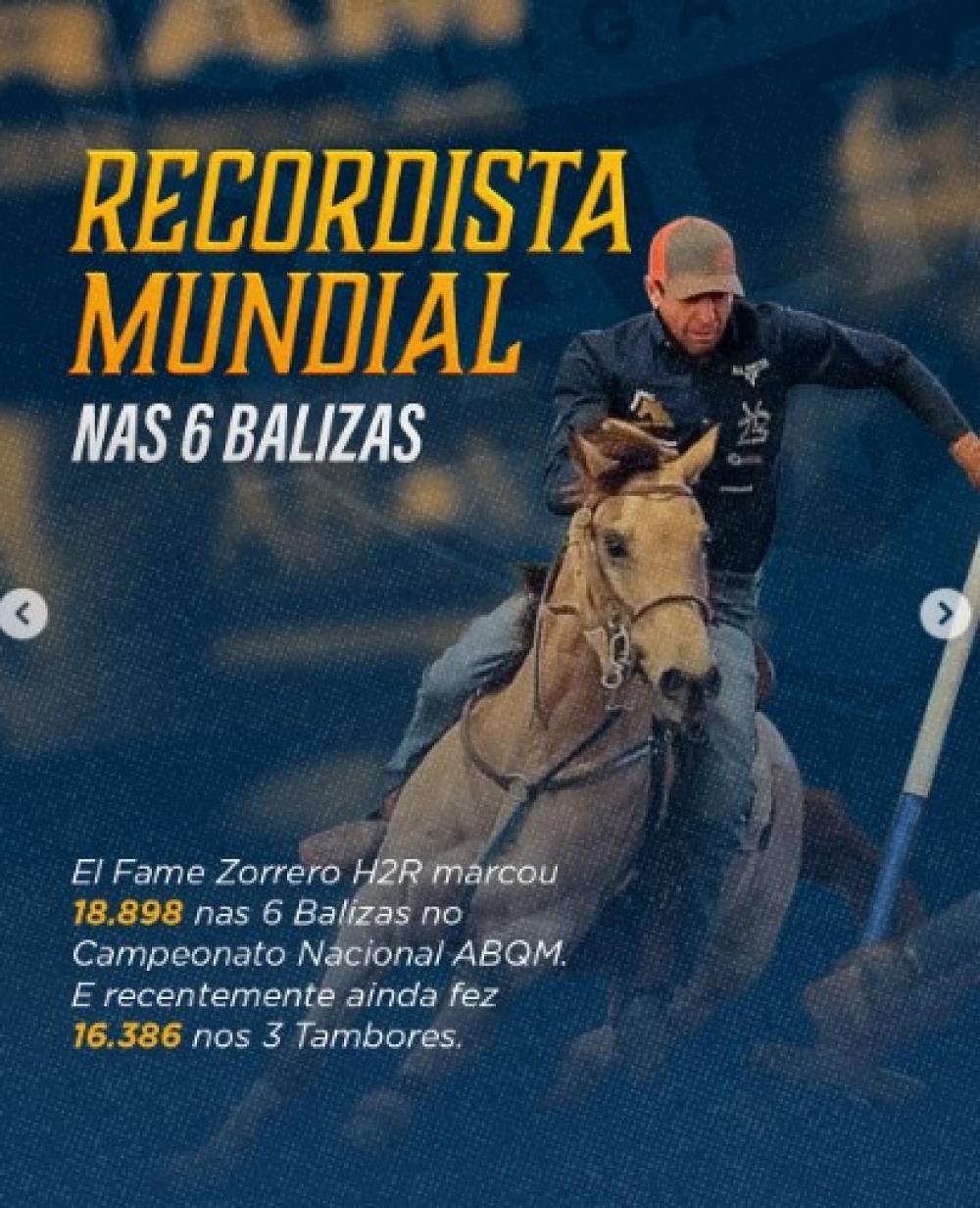 - EL FAME ZORRERO H2R: 698,00 pontos ABQM, R$ 369.613,00 em ganhos pelo SGP, com tempos de 16,4", Recordista Mundial de tempo nas Seis Balizas com 18.898!