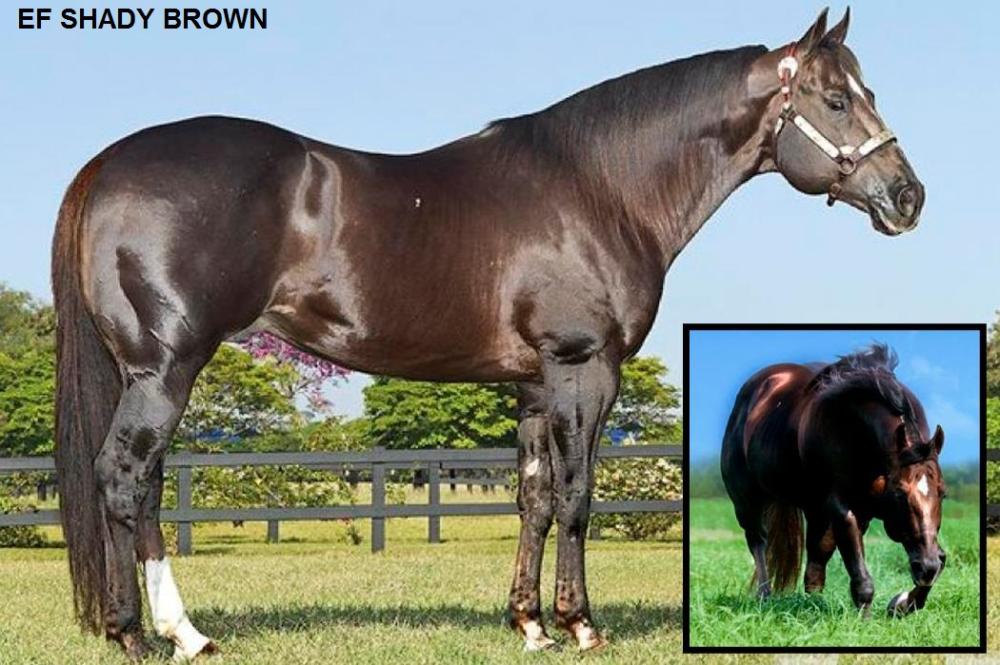 Filha de EF SHADY BROWN, um dos mais notáveis filhos de SHADY LEO em atividade, consagrado como COMPETIDOR, um FENÔMENO na REPRODUÇÃO TOP 20 MAIORES reprodutores do Quarto de Milha em pontos pela ABQM e TOP 15 em ganhos pelo SGP, onde seus filhos somam 3.900 pontos na ABQM em 9 modalidades distintas, R$ 1.261.449,50 em ganhos e 13 deles tem marca na casa dos 16s, com destaque para EF LAP OF BROWN, SUCESSO BROWN, BARACK SHADY, entre outros! Avô materno de grandes campeões como EF ADVANCE DASH, EF EURUS TA FAME, etc.