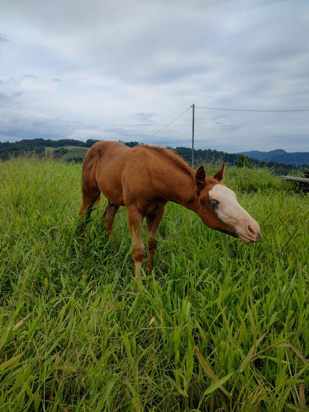 - Potro "cara branca", dois olhos azuis e calçado nas 4 patas