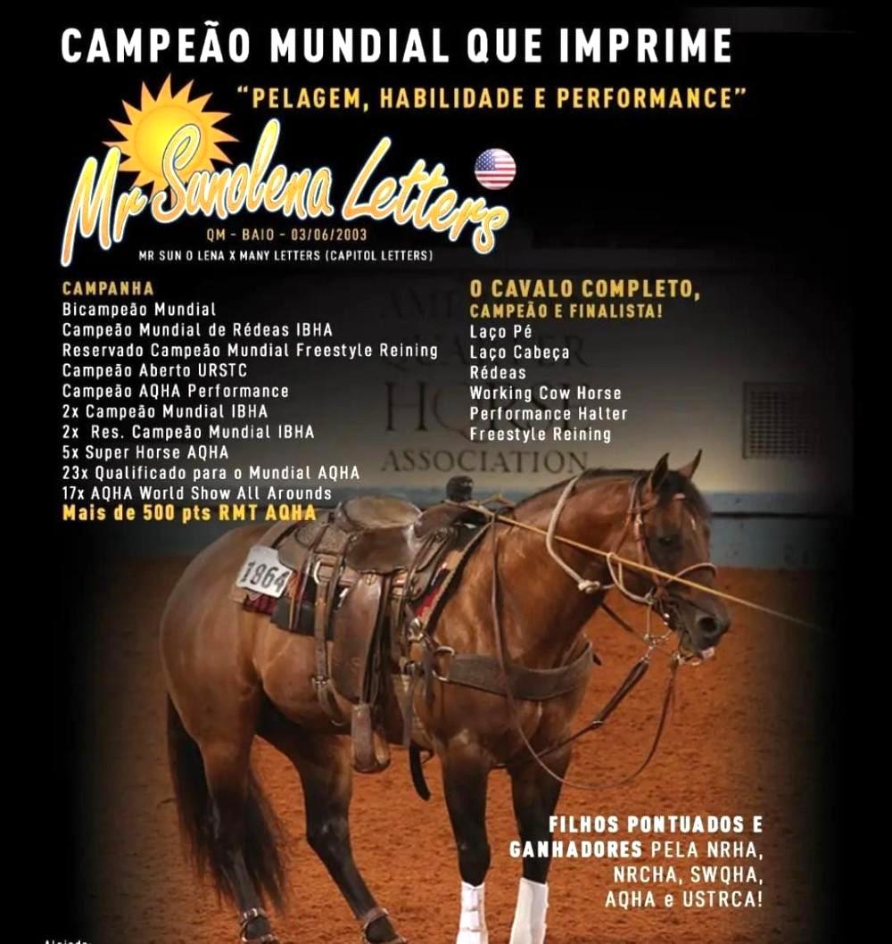 Seu pai BUD OLENA LETTERS é filho de MR SUNOLENA LETTERS, Importado. AQHA Champion: 524,5 pts AQHA e U$ 14.474,00 NRHA; Pontuado em 8 modalidades; 2X Campeão Mundial IBHA- Apartação e Redeas; 2X Res Campeão Mundial IBHA - Working Cow Horse; Superior em Laço Individual, Laço Cabeça e Laço Pe. Com poucos filhos em idade de competição ja produziu: PRETTY TICKET O'LENA, 2 pts ABQM, 5o. L Potro do Futuro Revolution Laço Cabeça Ab; TUFF DUNIT LETTERS, Res Campeão Potro Futuro ABQM 2021 Laço Ind Tec Am Castrado.