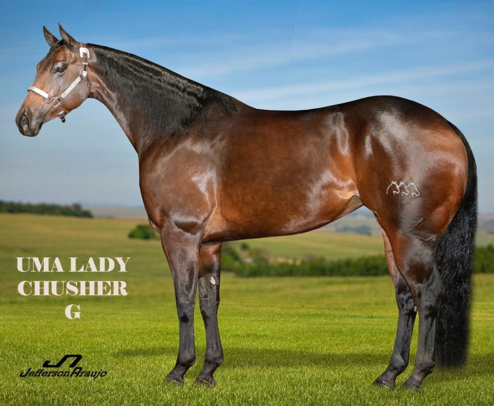 Sua mãe UMA LADY CHUSHER G, foi uma craque nas pistas, somando 103,50 pontos e RMT Superior em Três Tambores na Classe Aberta pela ABQM e R$32.050,00 em prêmios pelo SGP Sistema. Vencedora do Awards ABQM como fêmea mais pontuada do ano de 2019 em Performance Halter. 14x Campeã em Provas Oficializadas pela ABQM. Bicampeã da Copa dos Campeões ABQM/19 em Performance Halter (Fêmeas-Aberta e Amador), Bicampeã do Show AQHA da Copa dos Campeões ABQM/19 em Performance Halter (Fêmeas-Aberta e Amador), Top 10 no Potro do Futuro ABQM/15 em Três Tambores (Aberta), etc. Produtora de: