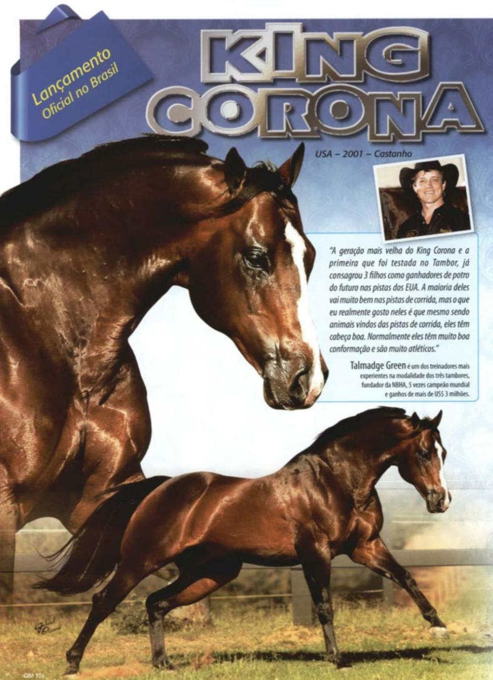 Único irmão próprio do CORONA CARTEL no mundo. Filho direto do lendário HOLLAND EASE na grande CORONA CHICK, que por muitos anos foi a melhor reprodutora de velocidade do mundo!