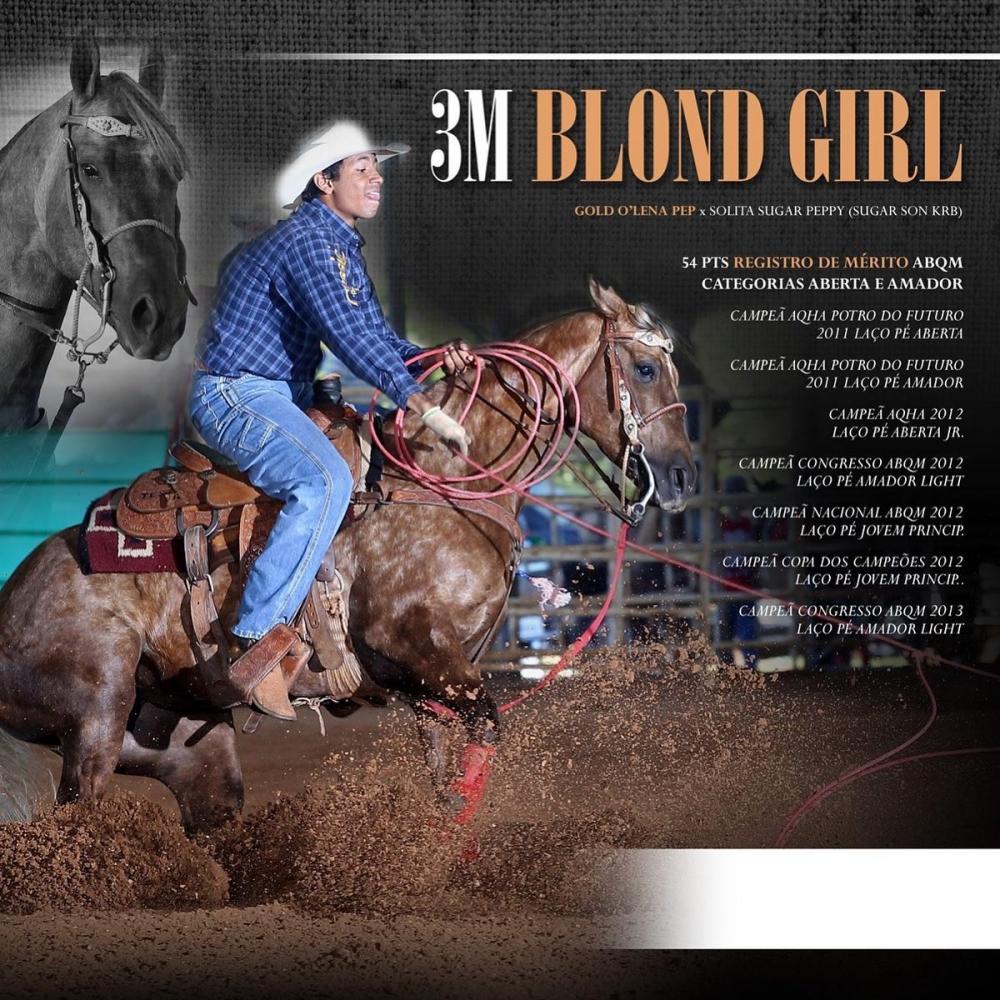 Sua mãe, 3M BLOND GIRL foi uma craque com 48,00 pontos na ABQM, sendo Bi Campeã do Congresso ABQM em Laço Pé, Campeã Nacional e Copa dos Campeões ABQM em Laço Pé, etc. Mãe de campeões com destaque para: