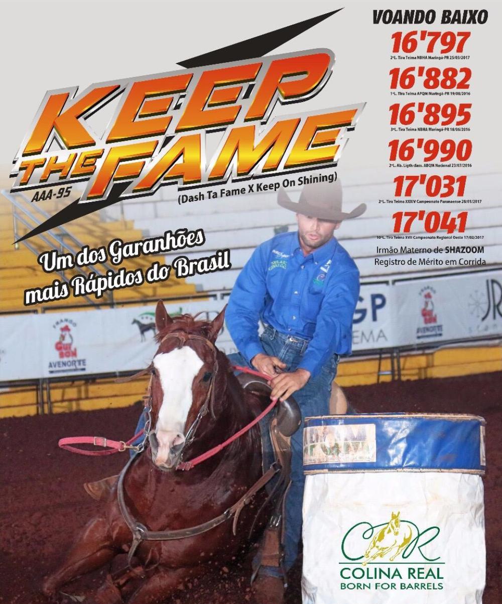 Seu pai KEEP THE FAME teve campanha na corrida e nos Três Tambores, sendo SI-95 no Jockey Club de Sorocaba, 2ª lugar no Pareo Especial Haras Canarim 301m - tempo 16s66. Nos Três Tambores, somou 44,50 pontos e R$ 22.878,00 em ganhos, com tempos na casa dos 16,7".