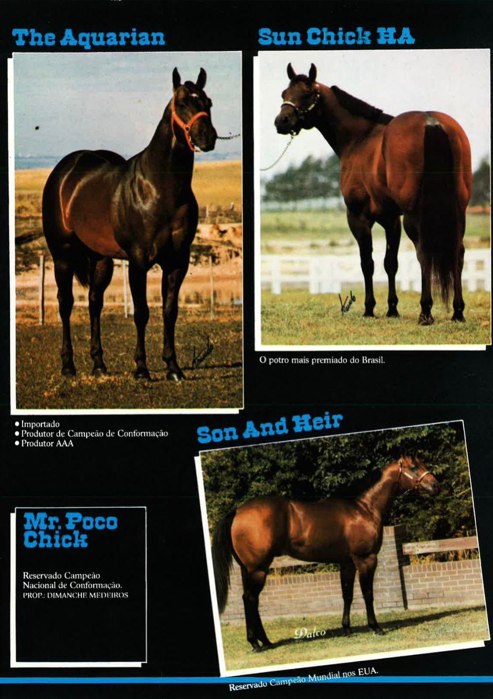 Filha de SUN CHICK JR, com 15,5 pontos pela ABQM em Conformação, Campeão I ET/XI Camp Nacional De Conformacao - Conformação Machos - Aberta - 2 anos, Campeão IV ET/I Circuito Rancho QM Conformacao - Conformação Machos - Aberta - 2 anos. Res. Campeão X Grand PR ABQM Do Potro Fut Conformacao - Conformação Machos - Aberta - 2 anos. Produtor de GOOLD CHICKS HÁ, 16,5 pontos ABQM em Laço. Foi 1ºL XVII Congresso Brasileiro da Raça Quarto de Milha 2007 - Laço em Dupla - Amador - Principiante; 3ºL XXXI Campeonato Nacional da Raça Quarto de Milha 2008 - Laço Cabeça - Amador - Principiante.