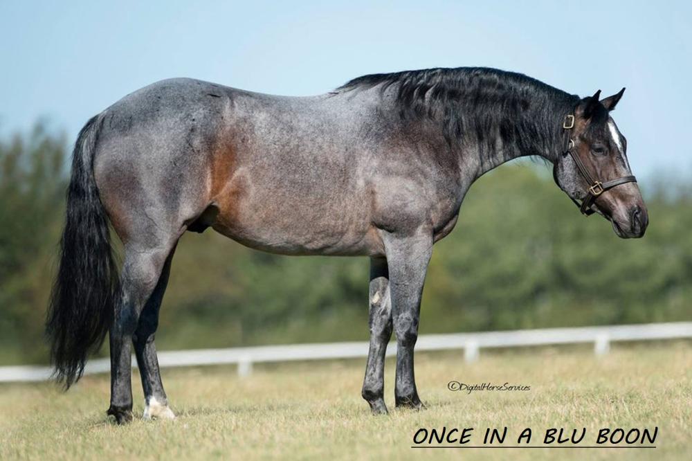 Seu pai é o americano ONCE IN A BLU BOON, ganhador de U$319.002,00 em Apartação. Campeão Mundial AQHA (Aberta Senior), Campeão do NCHA Open Classic/Challenge, Campeão do Arbuckle Mountain Open Futurity, Campeão do Brazos Bash Open Classic, etc. 50% de sangue da ROYAL BLUE BOON (Matriz Nº1 de todos os tempos em Apartação com +U$2,6 Milhões de produção). Seus filhos estrearam em 2018 e já se destacam em Apartação e WCH, somando ganhos de U$12 milhões pela NCHA. Pai de ganhadores como: